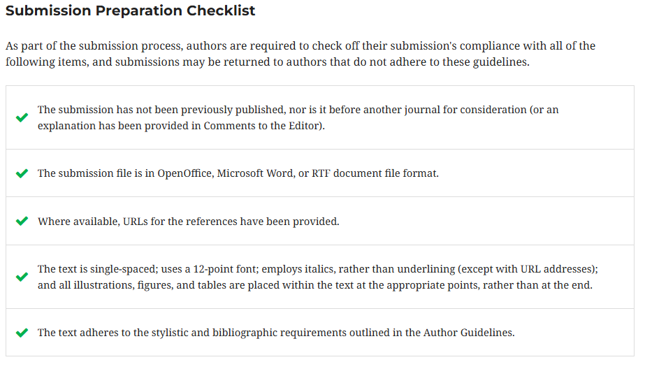 - Manuscripts should be well written in British English or American English as well as Indonesian; therefore, using a professional proofreader is highly recommended before submission.
